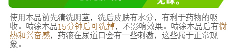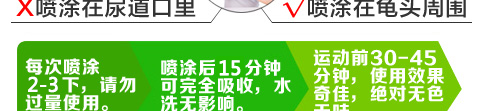 第一次喷的时候没有把握好量,用到第三次终于知道自己合适的用量了。客服说的有道理,人都是不一样的,有的吃一个馒头撑得慌,有的5个馒头吃不饱。要找到合适自己的。以后就按这个量用力巴达了。老婆和其他老婆们都很满意,哈哈。